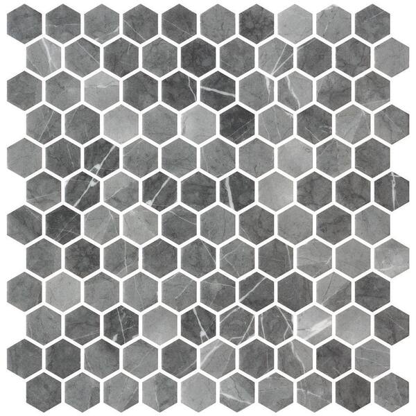 Trillion Fossil Gray Glossy 4.5 in. x 8.25 in. Smooth Geometric Glass Mosaic Tile Sample