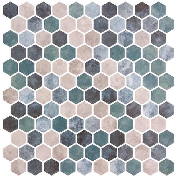 Trillion Peacock Tan/Blue/Green Glossy 4.5 in. x 8.25 in. Geometric Glass Mosaic Tile Sample