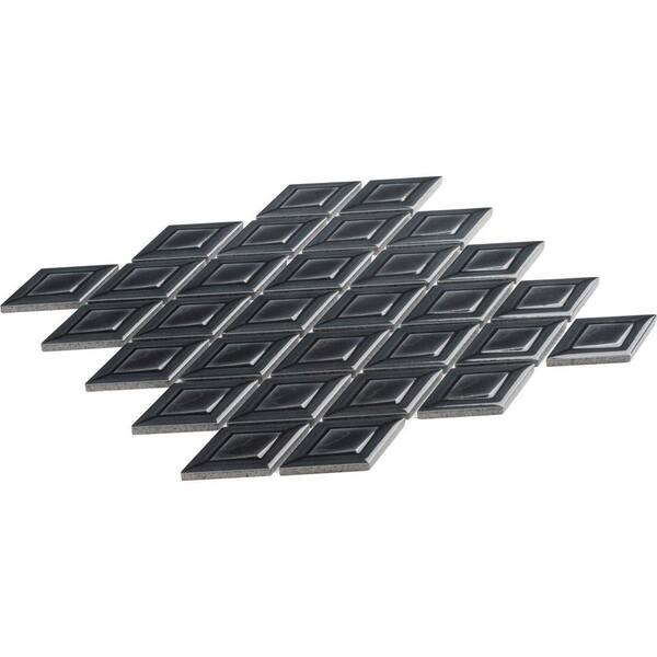 Venecia Gondolla Black 1 in. x 3 in. 3D Framed Diamond Glossy Porcelain Wall Mosaic Tile Sample