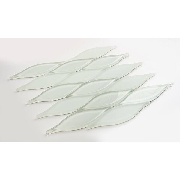 Zeille Ice White 5 in. x 6.5 in. Unique Shape Glossy Smooth Glass Mosaic Wall Tile Sample
