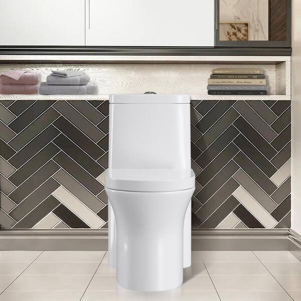 1-Piece 1.27 GPF Dual Flush Elongated Toilet in White