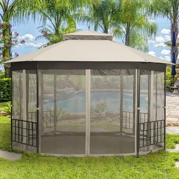 10 ft. x 12 ft. Beige Octagonal Patio Gazebo with Mosquito Net
