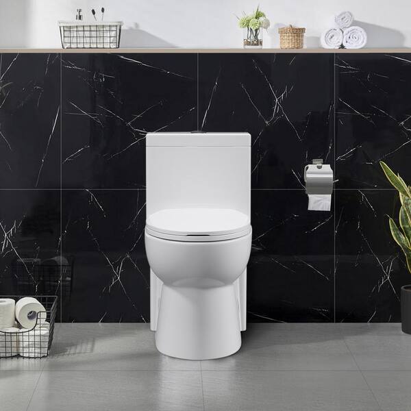 12 in. Rough-In 1-piece 1.27 GPF Dual Flush Elongated Toilet in Glossy White Seat Included