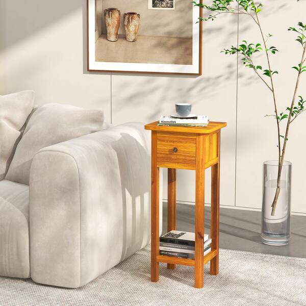 14 in. W x 31 1/2 in. H Brown Wood 2 Tier End Side Table Nightstand with Drawer
