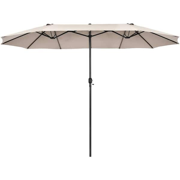 15 ft. Steel Market Double-Sided Patio Umbrella with Hand-Crank System in Beige