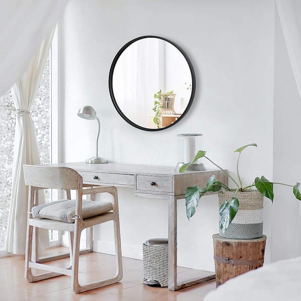 16 in. W x 16 in. H Round Aluminum Framed Wall Mirror Bathroom Vanity Mirror in Black