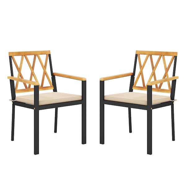18 in. Set of 2 Patio Dining Chairs with Removable Padded Cushions