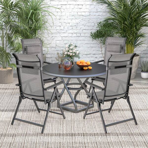 2-Piece Metal Outdoor Chaise Lounge Folding Patio Chairs with 10-Level Adjustable Backrests and Armrests