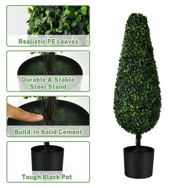 2- Pieces 3 ft. Green Indoor Outdoor Decorative Artificial Topiary Boxwood Tree Plant in Pot, Faux Fake Tree Plant