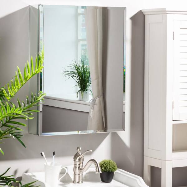 20 in. W x 26 in. H Rectangular Silver Aluminum Recessed/Surface Mount Medicine Cabinet with Mirror,Adjustable Shelves