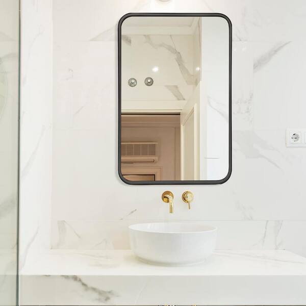 22 in. W x 30 in. H Metal Rectangle Framed Wall Bathroom Vanity Mirror in Black