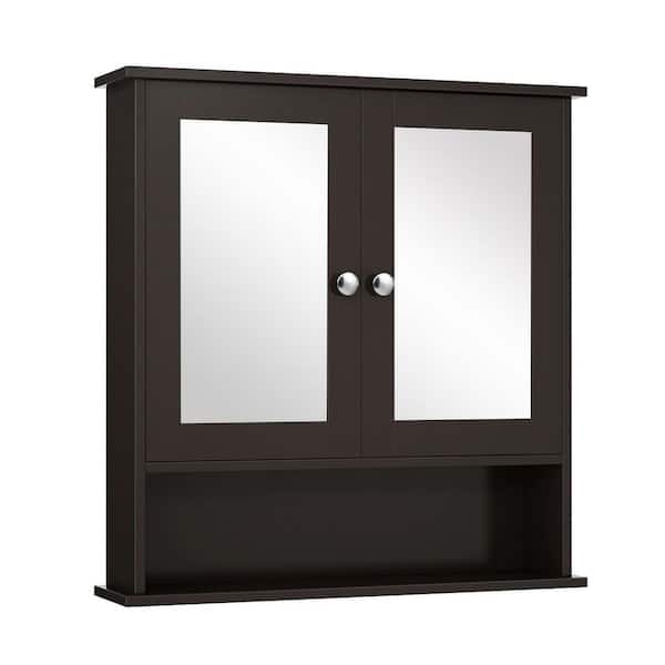 22 in. W x 5 in. D x 23 in. H Brown Bathroom Storage Wall Cabinet with 2 Mirrored Doors, Adjustable Shelf and Open Shelf
