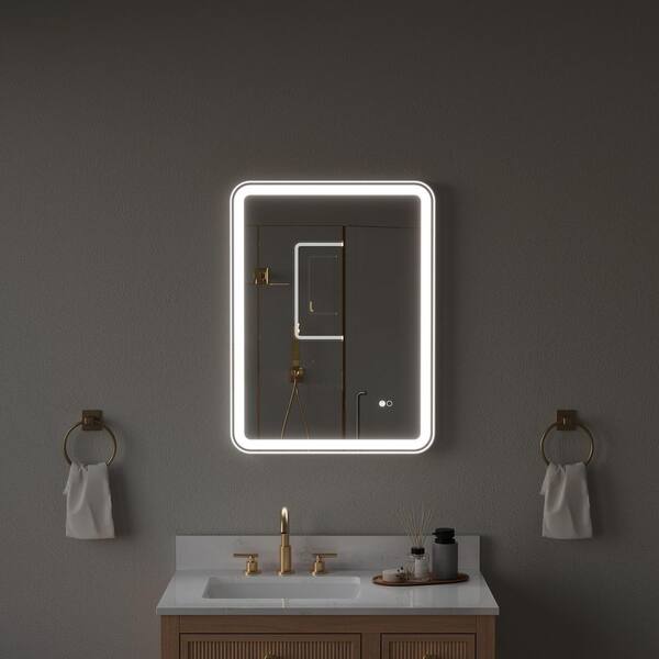 24 in. W x 32 in. H Rectangular Aluminum Framed Wall Mount LED Light Fog Free Bathroom Vanity Mirror in White