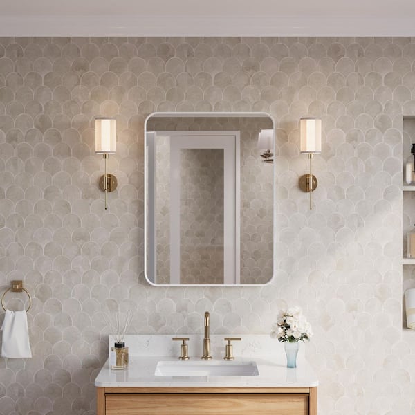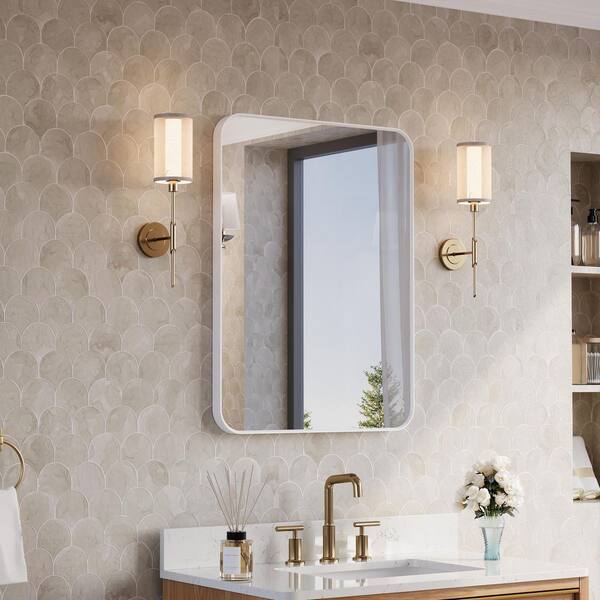 24 in. W x 32 in. H Rectangular Aluminum Framed Wall-Mounted Bathroom Vanity Mirror in White