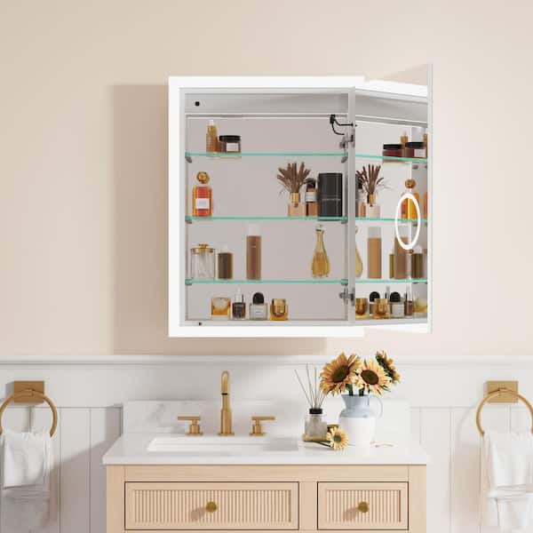 24 in. W x 32 in. H Rectangular Aluminum Medicine Cabinet with Mirror, Anti-Fog, 3-Color, 3X Magnifier, Right Open