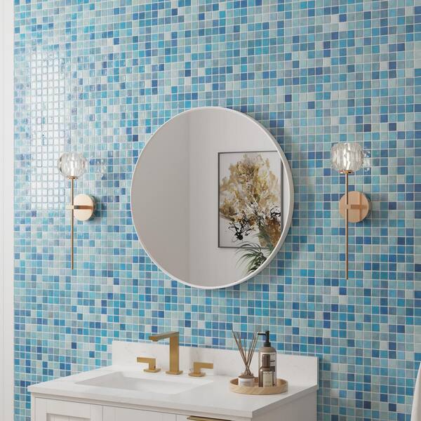 28 in. W x 28 in. H Round Aluminum Framed Wall-Mounted Bathroom Vanity Mirror in White