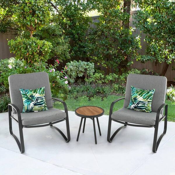 3-Piece Meta Rattan Patio Conversation Armrest Sofa Set with Gray Cushioned