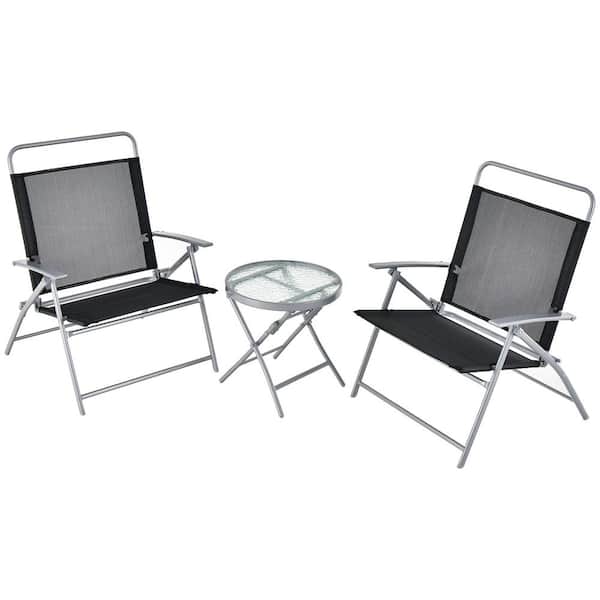 3-Piece Metal Patio Conversation Set Folding Chair, Coffee Table