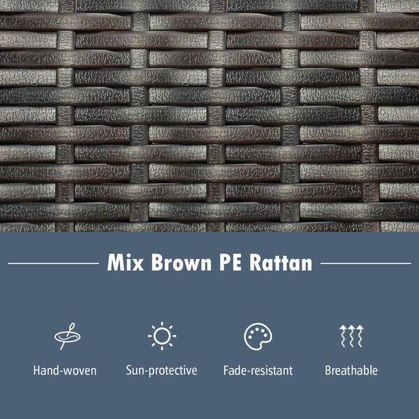 3-Pieces Wicker Patio Conversation Set Rocking Bistro Set with 2-Tier Coffee Table, Gray Cushions