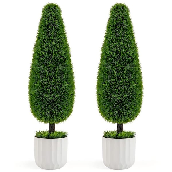 3 ft. Artificial Cedar Tree in Plastic Pot, Decorative Fake Plants, No-Fading, Set of 2