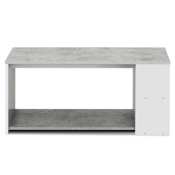 35 in. Gray Rectangle Wood Coffee Table Sofa Side Table with Storage Shelves