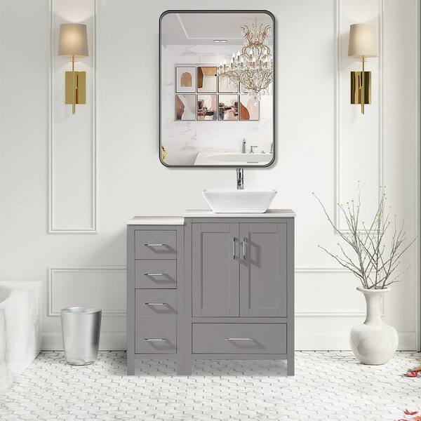 36 in. W x 22 in. D x 38.7 in. H Bath Vanity in Gary with White Cultured Marble Top,Counter Single Sink,Soft Close Doors