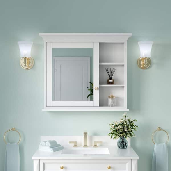 36 in. W x 30 in. H Rectangular Solid Wood Frame Bathroom Medicine Cabinet with Mirror