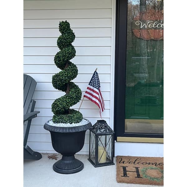 4 ft. Green Indoor Outdoor Decorative Artificial Boxwood Spiral Tree in Pot, Faux Fake Tree Plant