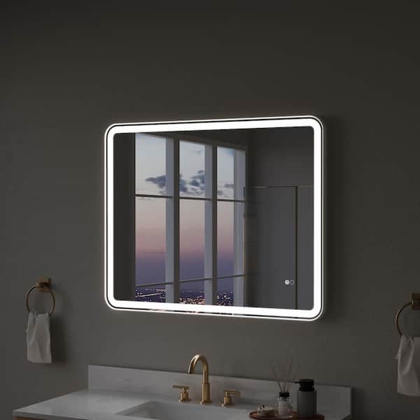 40 in. x 32 in. Rectangular Aluminum Framed Wall Mount LED Light Fog Free Bathroom Vanity Mirror in White Round Corner