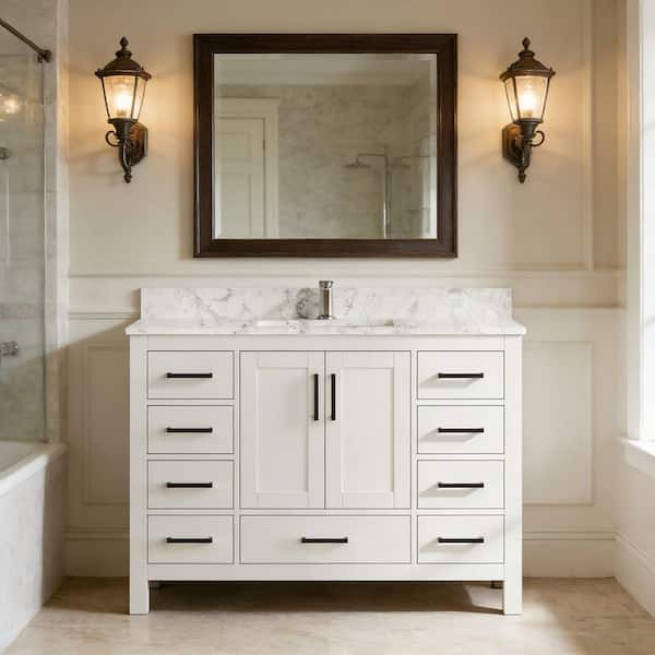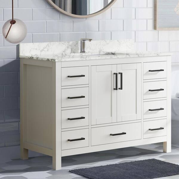 48 in. W x 22 in. D Solid Wood Freestanding White Bath Vanity with Carrara White Marble Top and Single Ceramic Sink