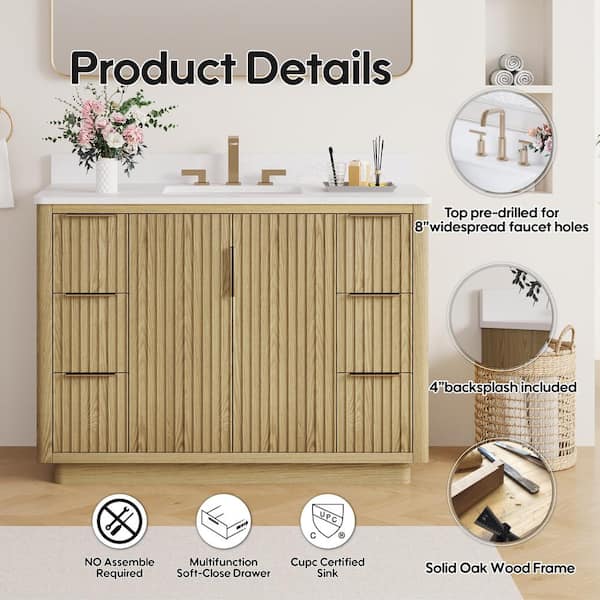 48 in. W x 22 in. D x 35 in. H Freestanding Bath Vanity in Oak with White Quartz Top