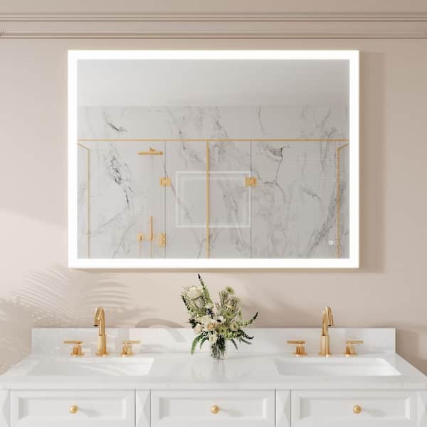 48 in. W x 36 in. H Rectangular Aluminum Framed Anti-Fog Dimmable Light Wall Mounted LED Bathroom Vanity Mirror in Gold