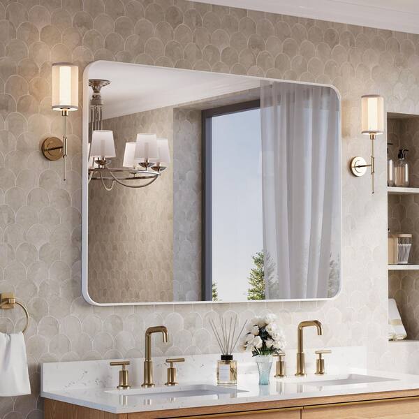 48 in. W x 36 in. H Rectangular Aluminum Framed Wall-Mounted Bathroom Vanity Mirror in White