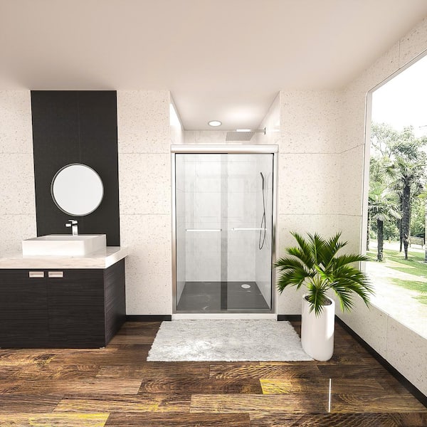 48 in. W x 76 in. H Double Sliding Framed Shower Door in Chrome Finish with 3/8 in. (8mm) Clear Certified Glass