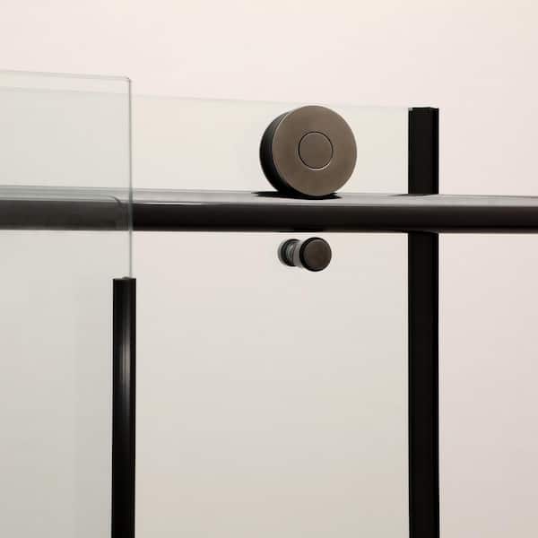 48 in. W x 76 in. H Sliding Semi-Frameless Bypass Shower Door Matte Black with Tempered Glass, Stainless Steel Towel Bar