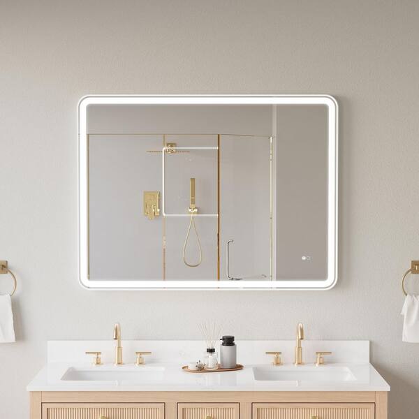48 in. x 36 in. Rectangular Aluminum Framed Wall Mount LED Light Bathroom Vanity Mirror in White Dimmable Front Light