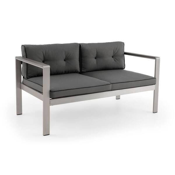 54 in. L Silver Aluminum Contemporary Outdoor Loveseat with Gray Cushion Olefin Fabric
