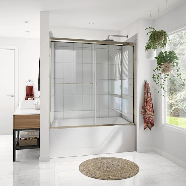 56 - 60 in. W x 58 in. H Sliding Semi Frameless Tub Door 1/4 (6mm) Clear Glass in Brushed Nickel