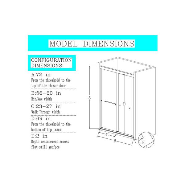 56-60 in. W x 72 in. H Sliding Semi-Frameless Shower Door in Chrome Finish with Clear Glass 1/4" (6mm), SGCC Certified