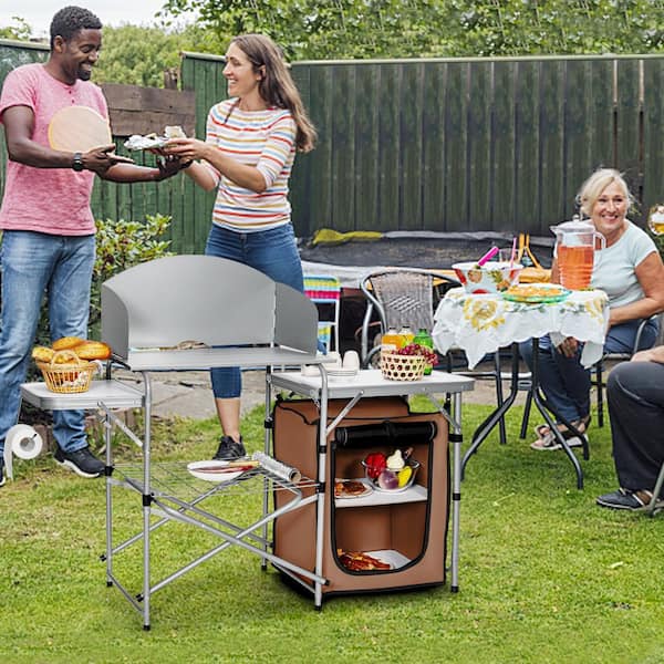 57 1/2 in. x 18 in. Metal Outdoor Foldable and Portable Camping Grilling Table with Carry Bag
