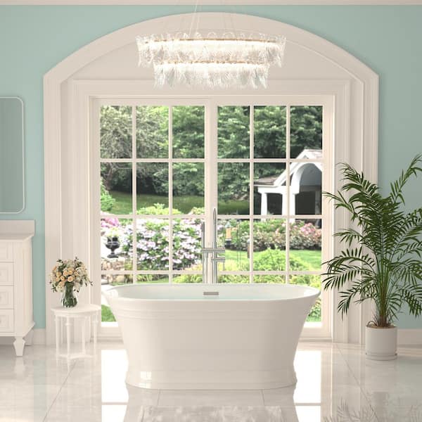 58.87 in. x 31 in. Pure Acrylic Soaking Bathtub with Center Drain in Glossy White, Pop-up Drain, Overflow Hole