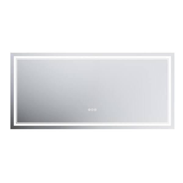 60 in. W x 28 in. H Rectangular Frameless Anti-Fog Backlit Front Lighted Wall LED Bathroom Vanity Mirror, Tempered Glass