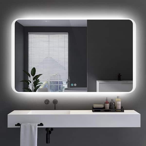 60 in. W x 36 in. H Rectangular Frameless Anti-Fog Touch Control Wall Mounted LED Bathroom Vanity Mirror, Dimmable