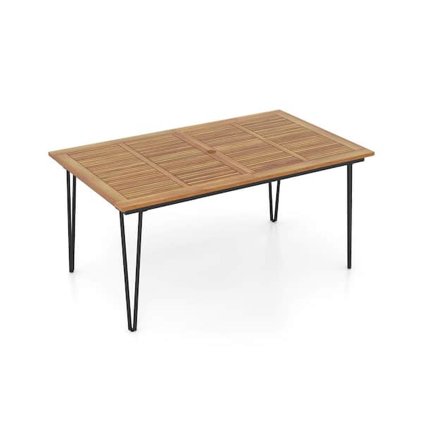 63 in. Rectangular Outdoor Dining Table with Acacia Wood Tabletop and Umbrella Hole