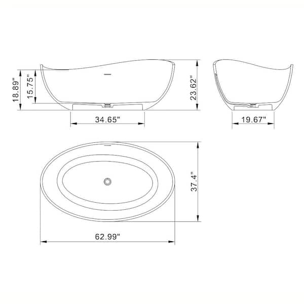 63 in. x 37.4 in. Stone Resin Solid Surface Matte Flatbottom Freestanding Soaking Bathtub with Drain Pipe in Black