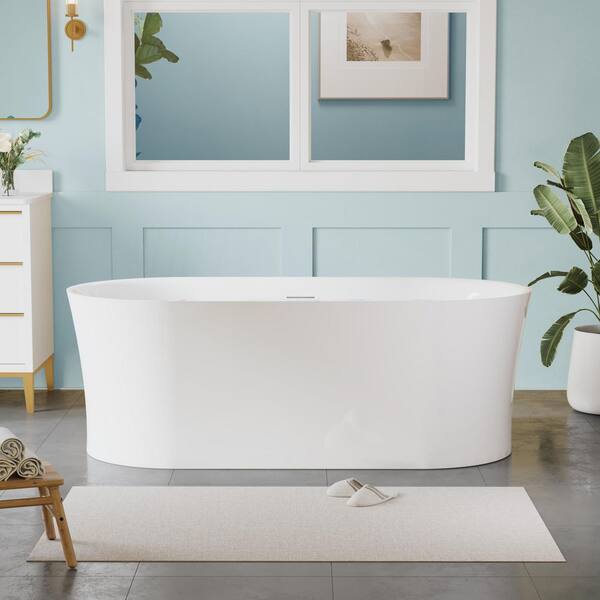 67 in. L x 31/12 in. W Pure Acrylic Soaking Bathtub with Center Drain in Glossy White, Pop-up Drain
