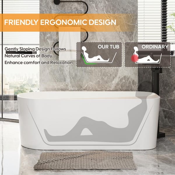 67 in. x 31.5 in. Acrylic Freestanding Soaking Bathtub with Drain and Overflow in White