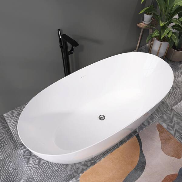 67 in. x 32.3 in. Soaking Bathtub with Integrated Slotted Overflow and Chrome Pop-up Drain Anti-clogging Gloss White