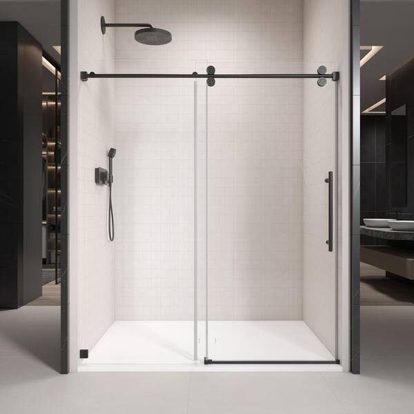68-72 in. W x 76 in. H Single Sliding Soft Close Frameless Shower Door with 3/8 in. (10mm) Clear Glass in Matte Black