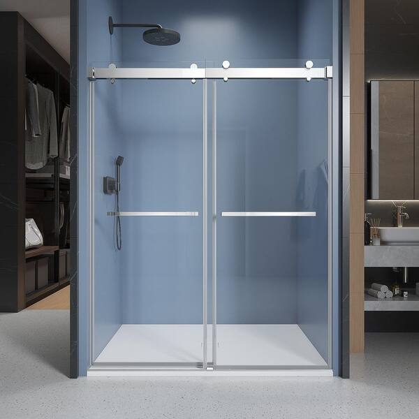 72-76 in. W x 76 in. H Soft-closing Double Sliding Frameless Shower Door in Chrome with 3/8 in. (10mm) Clear Glass